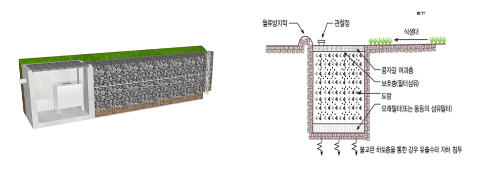 진하여 여과 및 하부토양으로의 침투를 시키는 시설이다.
